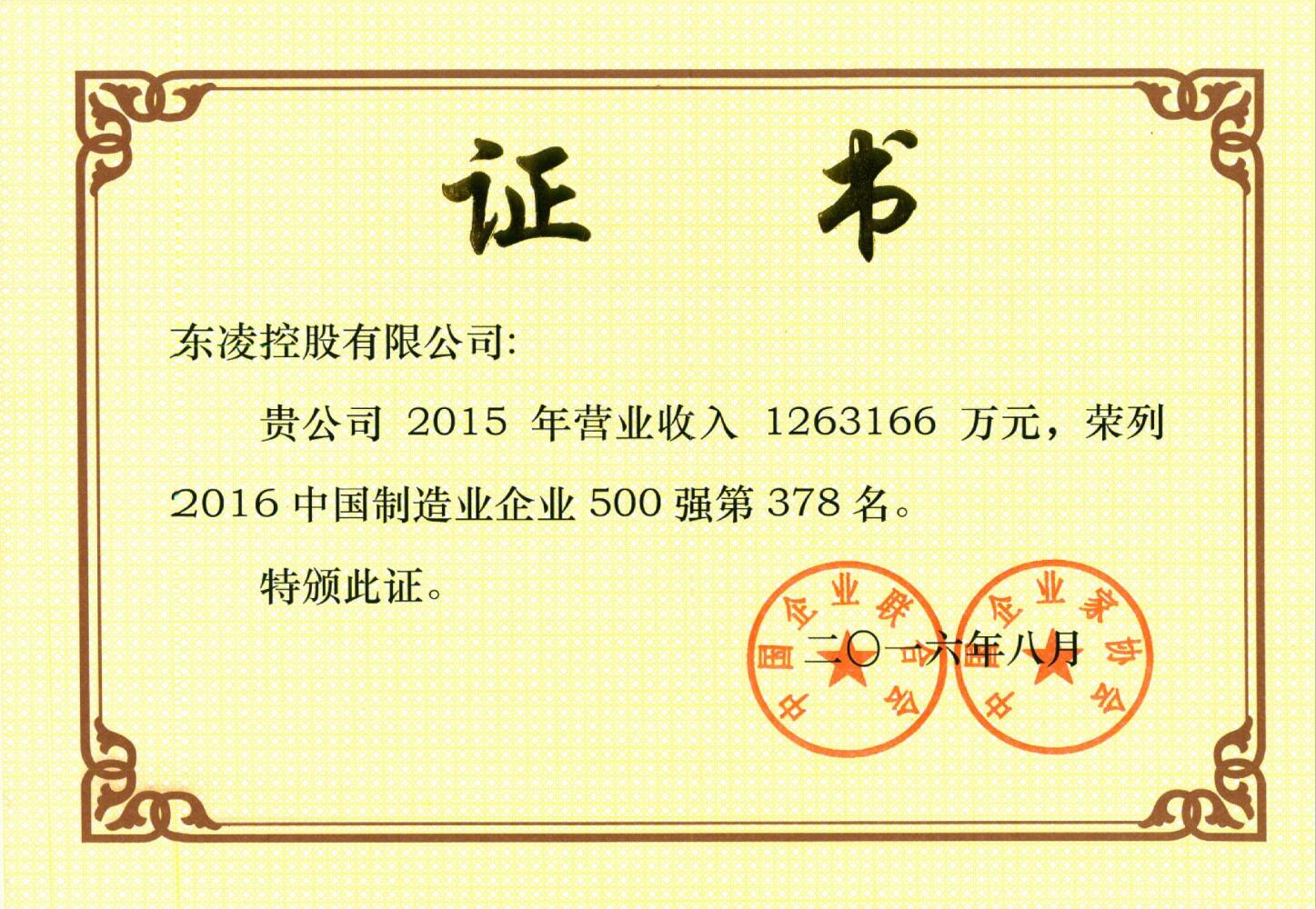 2016中国制造企业500强第378名