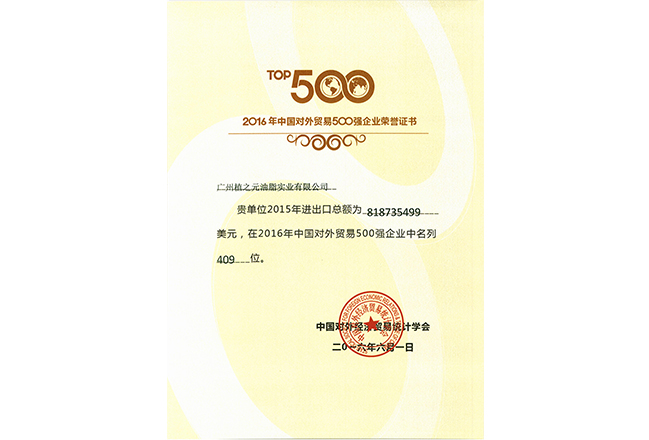 中国对外贸易500强企业409位